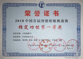 2018年中国首届智能船艇挑战赛指定功能赛一等奖;
