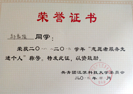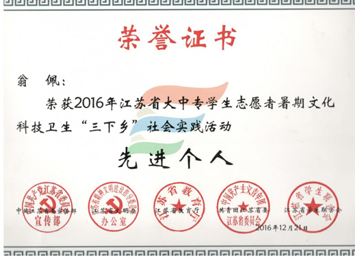 江苏省大中专学生志愿者暑期“三下乡”社会实践活动先进个人;