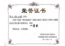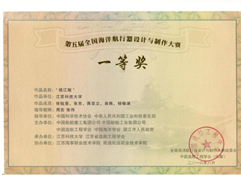 第五届全国海洋航行器设计与制作大赛一等奖;