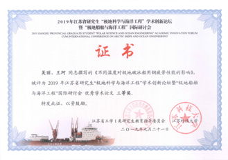 江苏省“极地科学与海洋工程”学术论文三等奖;