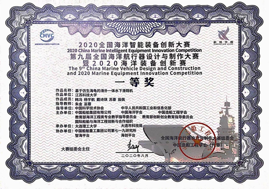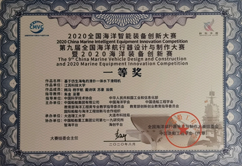 第九届全国海洋航行器设计与制作大赛一等奖;