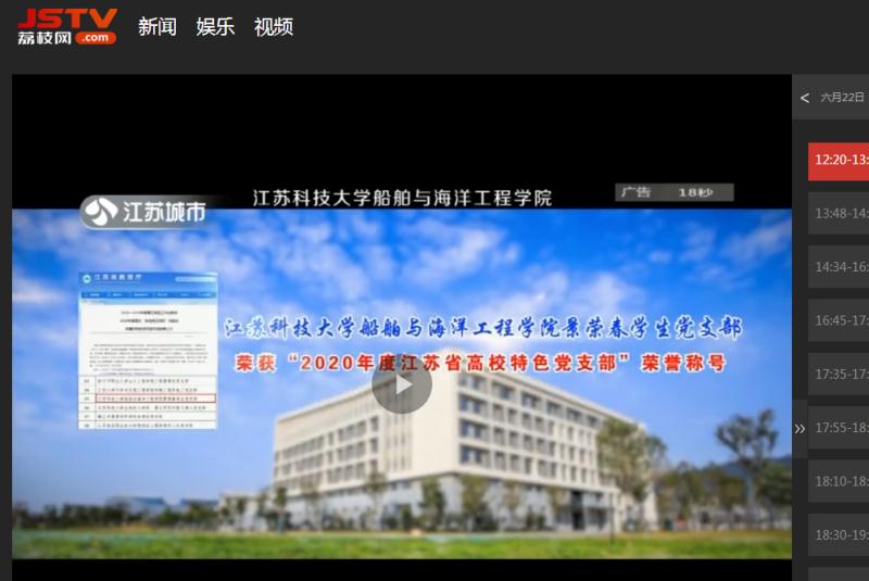 经支部申报,学校审核,雪园足球 景荣春学生党支部获“2020年度江苏省特色党支部”荣誉称号,支部相关事迹在江苏城市频道播出展示。