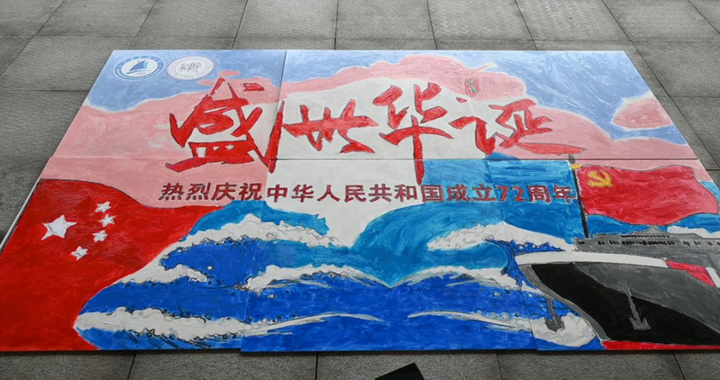 国庆期间,船海学子共聚长山校区南门,一起在泡沫板上为祖国作画。每个人绘制一小部分,将所绘的画拼在一起,形成庆祝祖国盛世华诞的巨幅画作。这是江科大学子为祖国母亲献上的一份最真挚的生日贺礼,百年前的小小红船在迷雾中摸索前行,百年后的新中国已成钢铁巨轮,在党的引领下航向劈波斩浪航向复兴的彼岸。