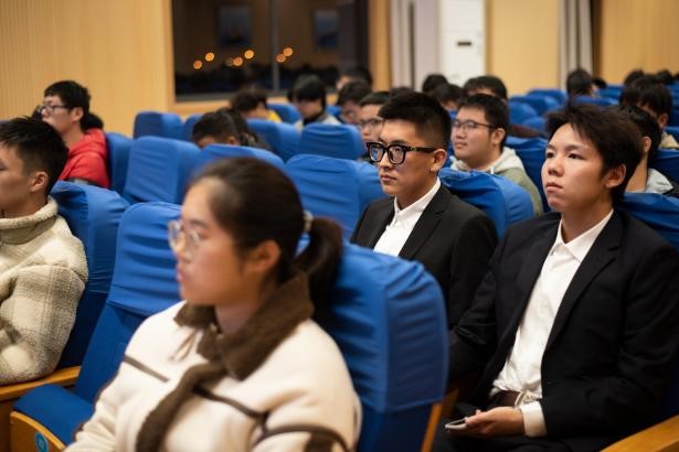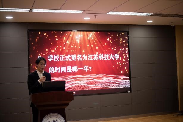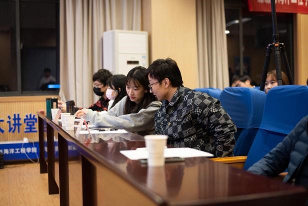 在中场休息时间,现场进行了有关船舶海洋知识的趣味问答环节,在场同学们积极踊跃回答问题,并收到了精心准备的礼物。