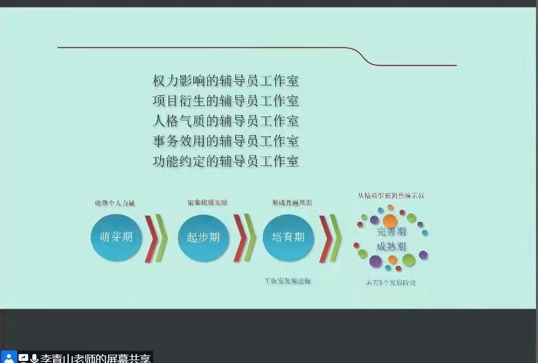 11月6日至11月7日,全体辅导员参加了“辅导员工作室建设及运行”为主题的线上培训,共同聆听了陕西科技大学李萌老师、西安交通大学叶明老师、北京工业大学廖满媛老师、沈阳工业大学李青山老师关于高校辅导员工作室建设及辅导员团队化运行的精彩讲座。