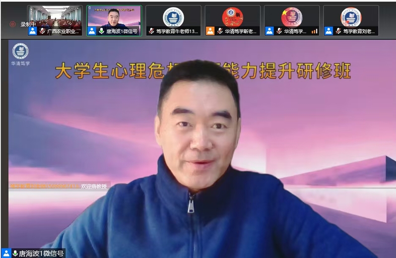 11月20日至11月21日,中南大学唐海波教授以“大学生心理危机干预能力提升”为主题,就精神卫生法背景下大学生心理危机干预面临的困惑与应对策略、大学生自杀高危人群的识别与干预技术、大学生抑郁症的识别与应对策略、大学生心理危机干预中的CISD技术操作技巧等四个方面进行授课,课程务实紧凑,可操作性强。