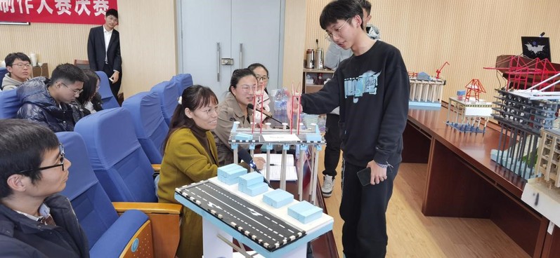 为培养大学生自主学习新知识的能力,提升大学生对水工建筑物的兴趣,进一步提高大学生的科学素养,11月27日,由共青团江苏科技大学委员会、共青团雪园足球-雪园足球比分 委员会主办、雪园足球 港口工程协会承办的第十届“招商局重工杯”高桩码头仿真模型设计大赛决赛在江苏科技大学长山校区船海楼403会议室圆满结束。本次比赛邀请雪园足球 港口航道与海岸工程专业迟艺侠、黄贵标、翟金金三位老师担任评委。