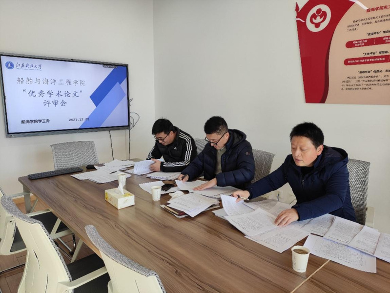 为进一步营造崇尚科学、追求真知的良好氛围,切实提高我校研究生的科研水平和学术能力,12月2日上午,雪园足球 举办了研究生“优秀学术论文”评审会,本次评审采用材料审查形式,专家委员会由海洋工程专业负责人施兴华、船舶原理教研室主任王树齐、船舶结构教研室主任朱亚洲三位老师组成。