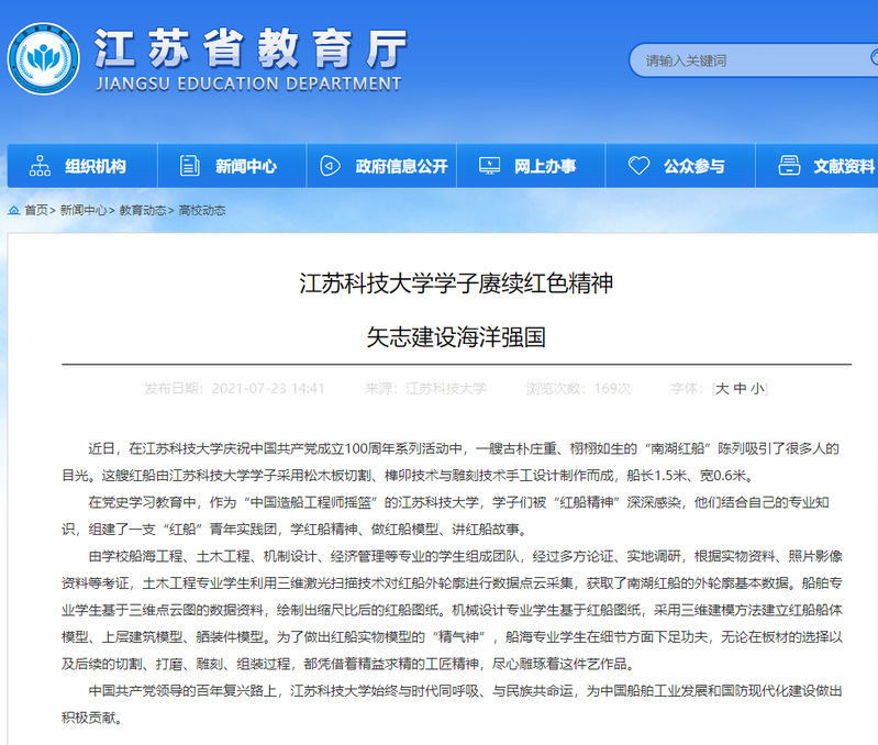 【建设成效】雪园足球 “红船”青年实践团专题活动被江苏省教育厅专题报道
