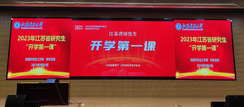 活动中,省教育厅副厅长袁靖宇、省科协副主席方胜昔出席活动并讲话,东南大学副校长钟文琪致辞,中国工程院院士、东南大学教授刘加平作主题报告。袁靖宇指出,研究生教育肩负着高层次人才培养和创新创造的重要使命,是实现高水平科技自立自强的重要支撑;研究生是科技创新的重要力量,是强国建设、民族复兴的生力军。他勉励研究生深入学习领会习近平总书记给南京审计大学审计专业硕士国际班的留学生回信精神和考察紫金山实验室时的重要讲话精神,争做“有理想、敢担当、能吃苦、肯奋斗”的新时代研究生,志存高远、脚踏实地,科创报国、不负党和人民。刘加平讲授了主题为“开启科研之路,成就价值人生”的第一课。他用朴实而真挚的语言讲述了从事科学研究的亲身经历,勉励大家立科研报国的鸿鹄之志,炼穷理致知的全面素质,走行稳致远的科研之路,成攻坚克难的家国梦想,把论文写在祖国大地上,努力成为强国建设、民族复兴的践行者。最后全体研究生进行学术诚信宣誓并一同签署了《江苏科技大学研究生学术诚信承诺书》,旨在促进优良校风、学风建设,规范学术行为,维护学术诚信。