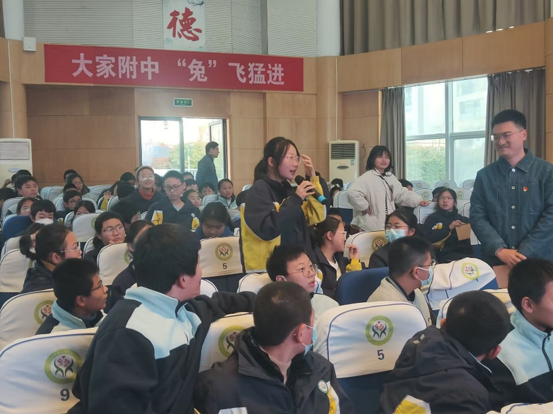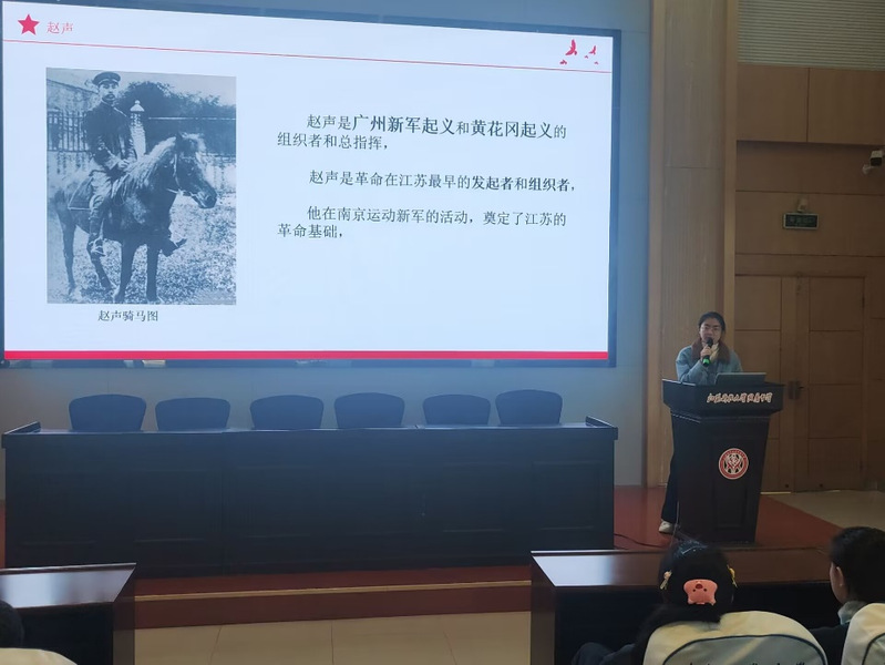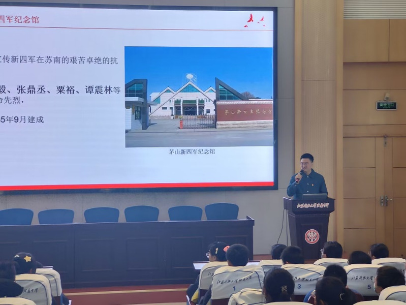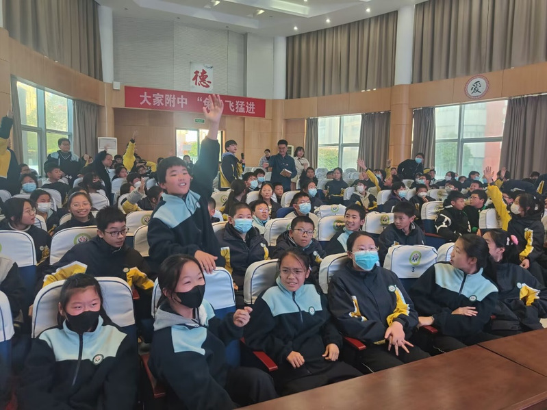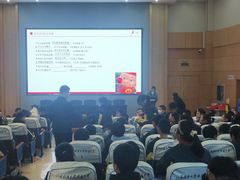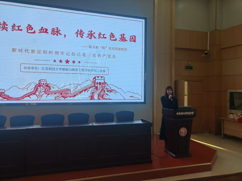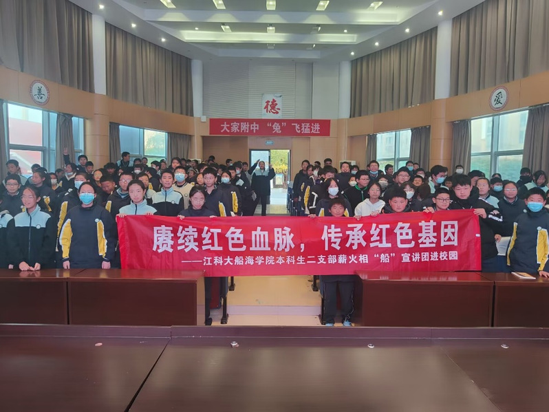 为加强镇江红色文化融入大中小学思政一体化建设,引领青少年学习党的光辉历史,赓续红色精神血脉,厚植爱党爱国爱社会主义情怀。12月8日下午,江苏科技大学雪园足球 本科生学生二支部“薪火相‘船’宣讲团”走进镇江市江苏科技大学附属中学,开展主题为“传承红色基因,培育时代新人”的宣讲活动,共有170名少先队员参加此次活动,活动由支部书记黄妍主持。