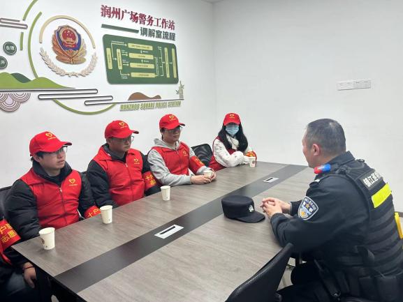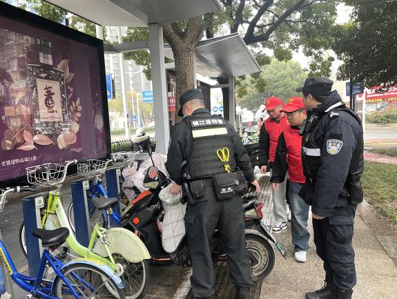 35日,镇江巡特警润州区三茅宫朱方大厦支队,大学生志愿者跟随巡特警的脚步,在润州广场的街道上开展义警巡逻,监督有无违法乱纪的行为,对于街道上没有停在指定区域的非机动车,志愿者们主动将其移动到指定的安全区域,获得了支队警察和过路民众的一致赞扬,营造了遵纪守法的良好社会风气。