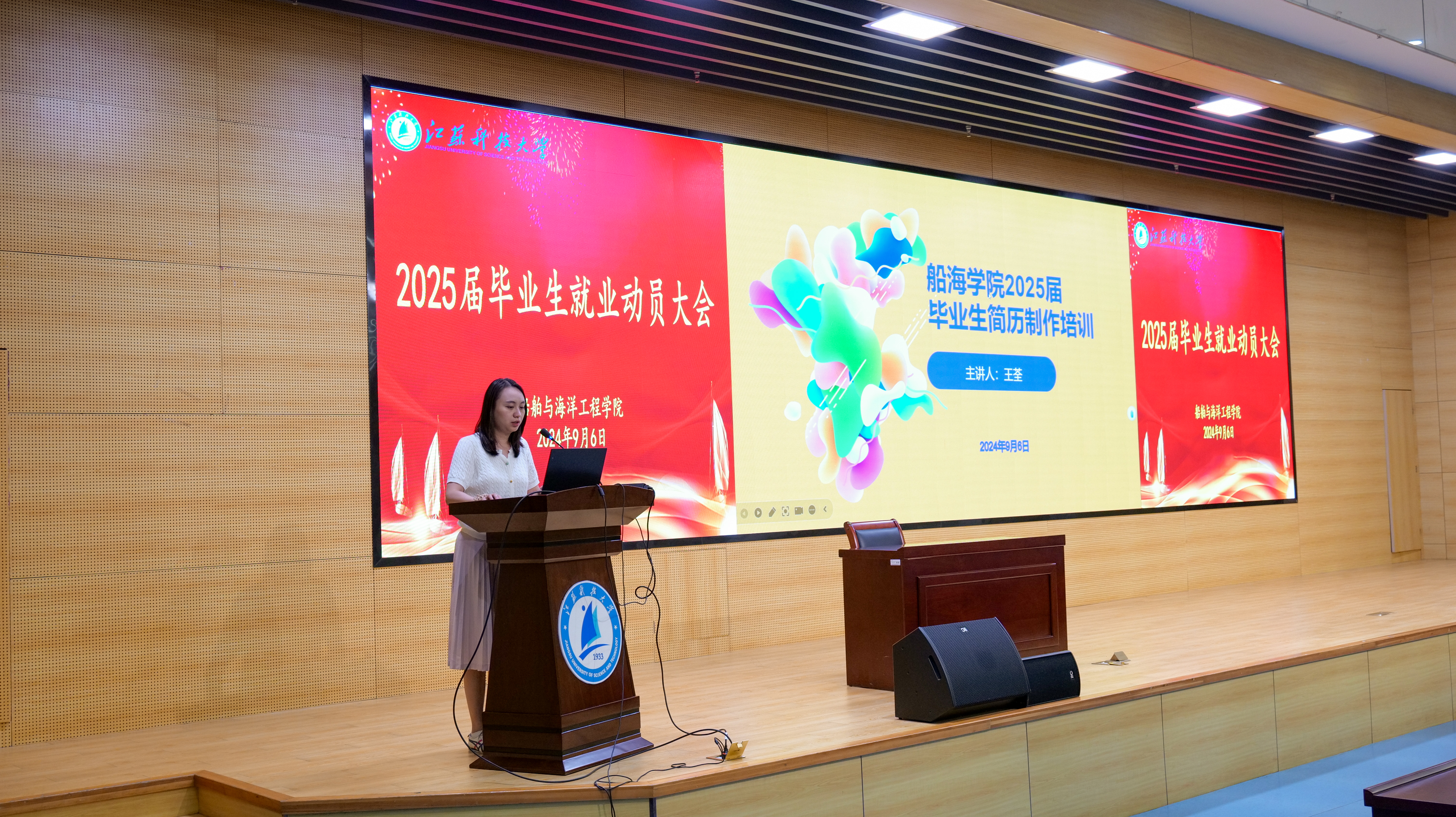 为贯彻落实党中央、国务院关于高校毕业生就业工作决策部署,帮助毕业生深刻认识当前就业形势与就业压力,熟悉就业政策,充分调动就业积极性,树立就业信心,船海雪园足球 于9月6日在图书馆B105报告厅举行2025届毕业生就业动员大会。雪园足球 党委副书记巫蓉、毕业班辅导员及全体2025届毕业生参加会议。