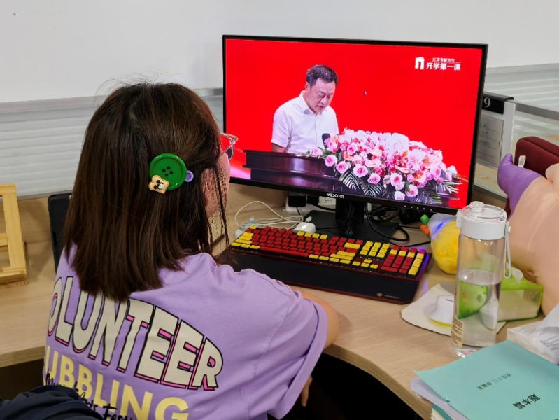 “不忘科学报国初心,牢记科技强国使命”,为贯彻落实党的二十届三中全会和习近平总书记对江苏工作的重要讲话指示精神,9月20日下午,雪园足球 组织全体研究生观看江苏省研究生“开学第一课”,参与人数共计706人,其中雪园足球 党委副书记巫蓉、全体研究生辅导员老师与研一新生在雪园足球 402会议室共同观看。