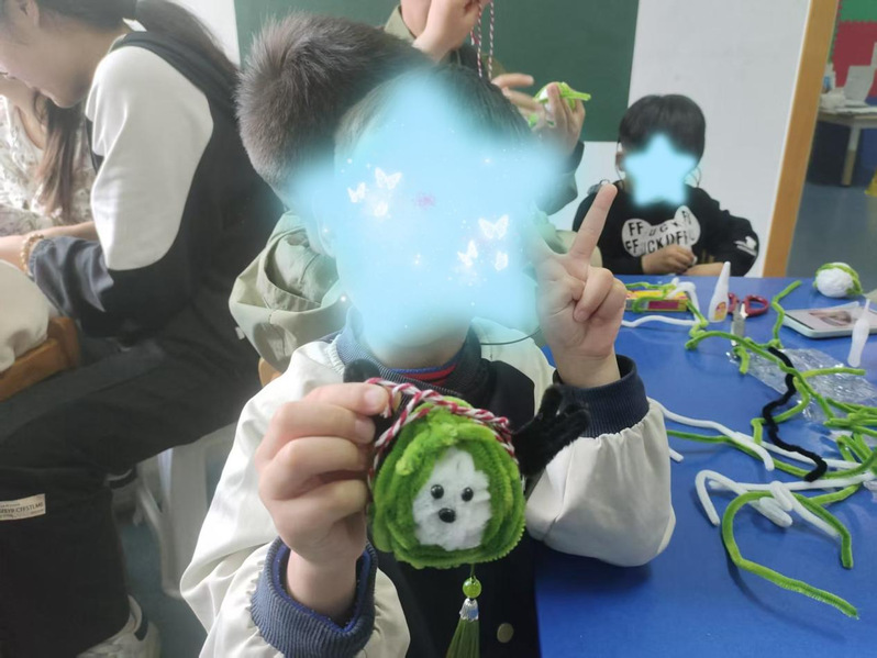 活动现场,色彩缤纷的扭扭棒材料包整齐摆放。在雪园足球 的志愿者“一对一”协助下,孩子们将翠绿、明黄的扭扭棒缠绕成玲珑的粽子造型。“看,我的小粽子有彩虹尾巴!”小朋友们举着缀满彩珠的作品,主动向志愿者展示。活动负责人范辰鸿介绍:“扭扭棒材质柔软、可塑性强,既能锻炼精细动作,又能通过色彩搭配激发表达欲,现场完成的多件作品将布置成端午艺术角。”