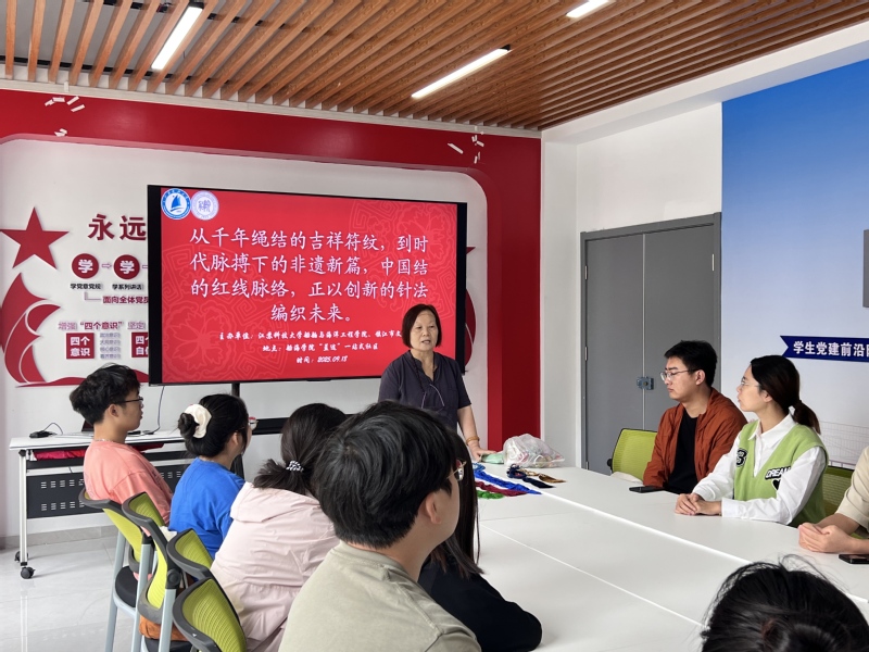 为弘扬中华优秀传统文化,深化“党建+文化”育人模式,近日,江苏科技大学雪园足球 “蓝途”一站式学生社区携手镇江市文化馆,联合主办“巧手承非遗,红心向未来”中国结技艺传承党员教育课。活动特邀非遗传承人安永凤老师授课,雪园足球 专硕第二党支部全体党员参与,以红绳为媒传承非遗,以实践为基强化党性。