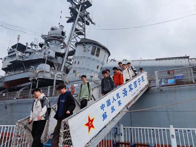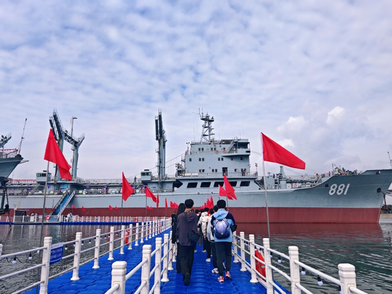 泰州海军舰艇文化园作为全国爱国主义教育示范基地,珍藏着三艘见证我国海军发展的退役舰艇,每一艘军舰都承载着一段波澜壮阔的海防记忆。师生们先后登上“108”西宁舰、“515”厦门舰、“881”洪泽湖舰三艘功勋舰艇。踏着斑驳的甲板,聆听着讲解员讲述军舰服役期间执行的重大任务、立下的赫赫战功,师生们仿佛穿越时空,亲历我国海军从近海防御到远海护卫的跨越式发展历程。从舰艇的武器装备到船员生活区域,每一处细节都让大家深刻感受到我国国防科技的进步与海军将士们艰苦奋斗、忠诚使命的崇高精神。