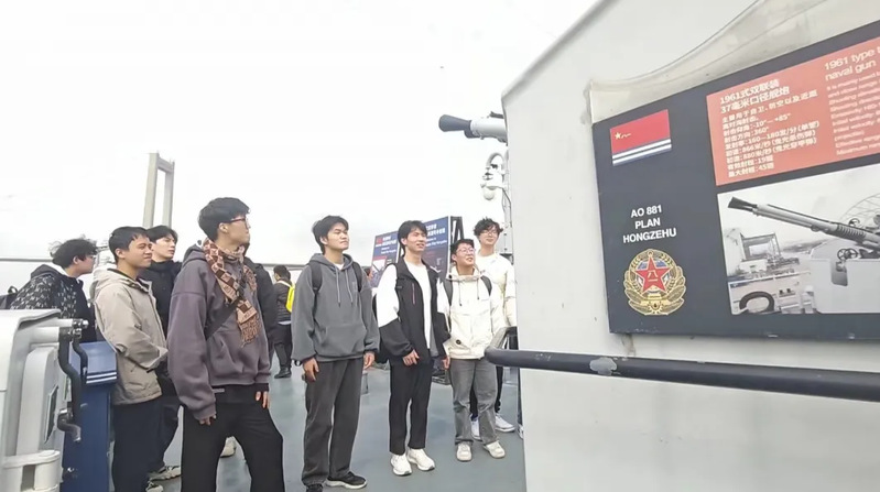 在现场分享环节,党支部书记葛斐结合舰艇历史与专业特色,带领师生重温“红船精神”,并围绕“船海人如何践行海洋强国使命”展开交流。大一新生们纷纷表示,通过登舰研学,不仅直观了解了船舶与海洋工程专业的应用场景,更感受到了肩上沉甸甸的责任,未来将以饱满的热情投入专业学习;大三学生则结合实习实践经历,分享了将专业知识与国家海防需求相结合的思考。