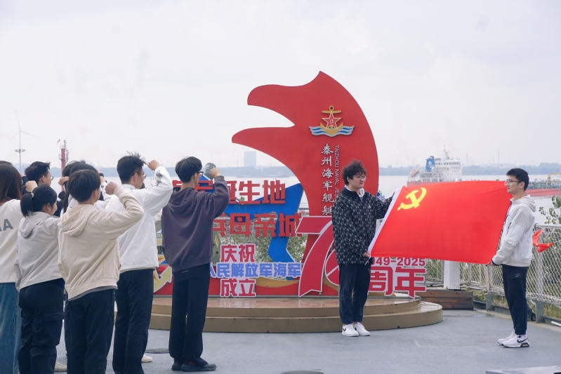 站在军舰甲板上,全体师生面向党旗郑重宣誓:“造大国重器,铸船魂精神;红船领航,挺进深蓝;强国有我,请党放心!”铿锵有力的誓言响彻舰艇上空,也在师生们的心中久久回荡。