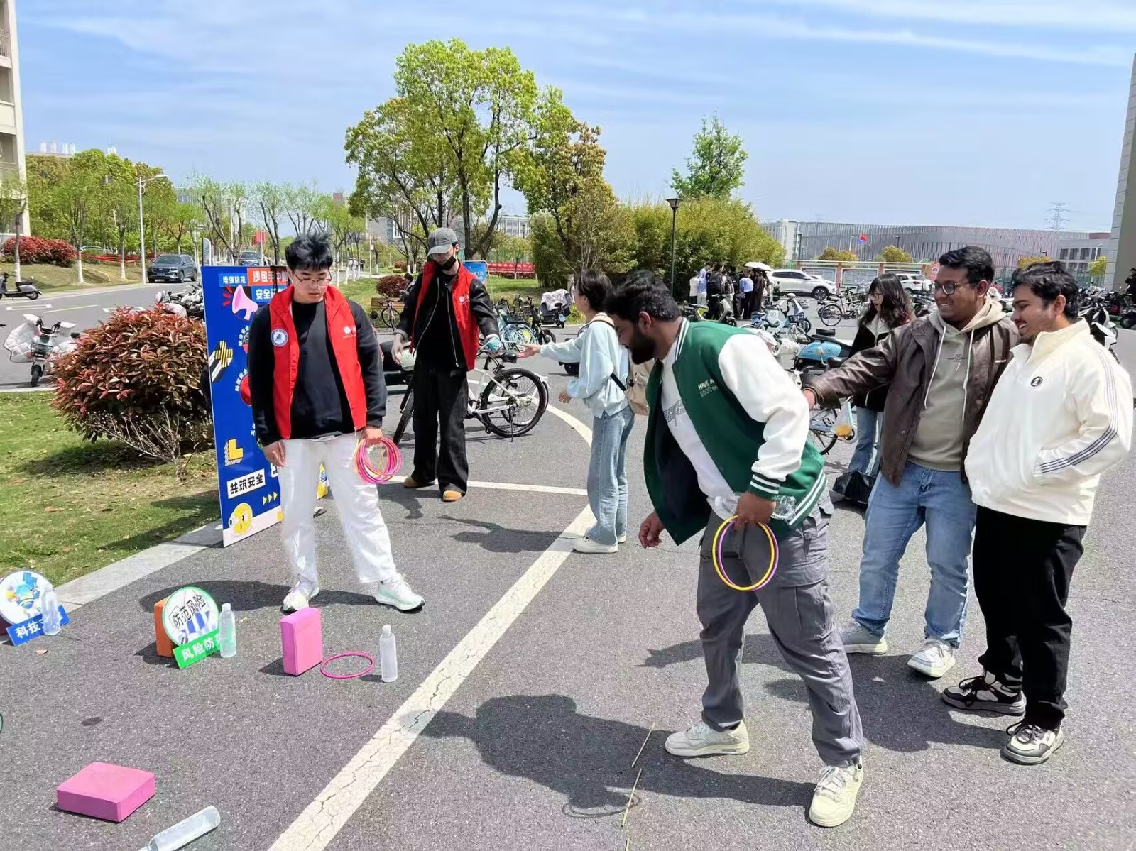本次活动围绕“国安防线守护计划”主题,设置了三个层层递进的游戏环节,将总体国家安全观涵盖的12个重点领域知识融入游戏设计中:安全靶心精准投——以丢沙包为核心玩法,印有不同安全领域名称的靶盘对应国家安全各重点方向,参与者投中靶位即可获得对应领域的知识讲解卡,快速建立对国家安全领域的基础认知;风险隐患全兜住——采用套圈形式,立柱印有国家安全相关标识、风险场景与核心知识点,套中目标即可获得对应知识点解读,在互动中沉浸式完成“隐患排查”,识别危害国家安全的各类风险点;国安知识大闯关——为最终挑战环节,参与者凭借前两关获得的知识卡即可参与答题。